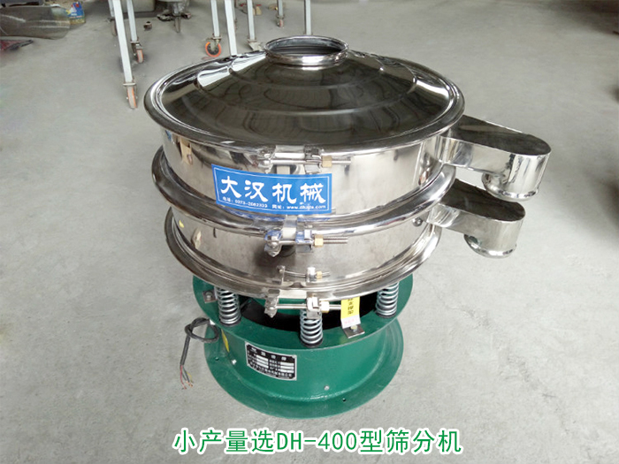 小產(chǎn)量選DH-400型篩分機(jī):篩分直徑為350m/m,功率為0.18kw,每小時處理量為80kg-150kg。