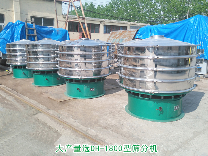 大產(chǎn)量選DH-1800型篩分機(jī):篩分直徑為1720m/m,功率為2.2kw,每小時處理量可達(dá)到800kg-1500kg。